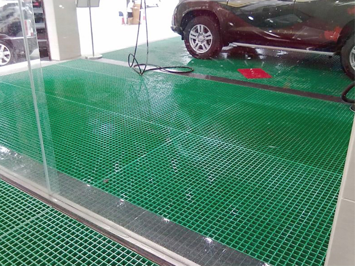 Molded fiberglass grating is a fiberglass-reinforced plastic (FRP) that combines fiberglass rovings with thermosetting resins to form a strong, one-piece molded panel. A 65%/35% resin to glass weight ratio provides high corrosion resistance. Meniscus fiberglass flooring surfaces or applied grit fiberglass flooring surfaces provide slip resistance when compared to other flooring products. This molded fiberglass grating product is better suited for corrosive environments.