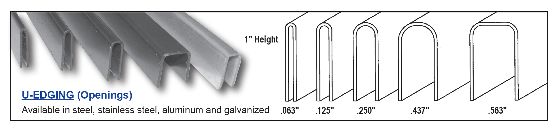 Our U-Edging is easy to install, available in custom lengths, and fully welded to ensure a solid encasement for the wire mesh. U-Edging can be used in a variety of applications. Some of these applications include: