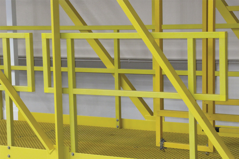 - Safety Features - Fiberglass grating handrail systems come in a highly visible yellow color and feature low electrical conductivity, as well as high strength.