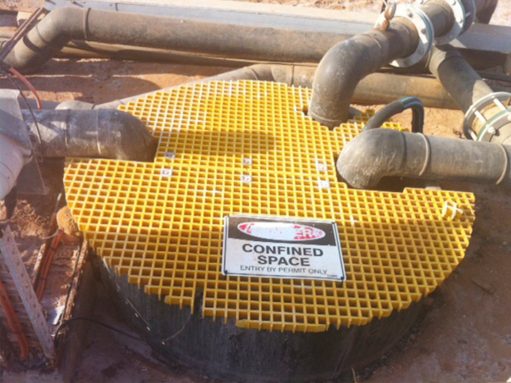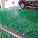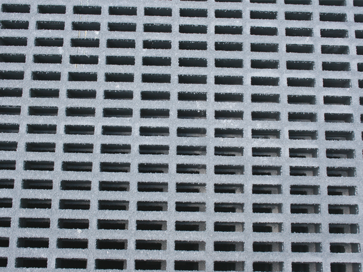 Molded fiberglass grating is a fiberglass-reinforced plastic (FRP) that combines fiberglass rovings with thermosetting resins to form a strong, one-piece molded panel. A 65%/35% resin to glass weight ratio provides high corrosion resistance. Meniscus fiberglass flooring surfaces or applied grit fiberglass flooring surfaces provide slip resistance when compared to other flooring products. This molded fiberglass grating product is better suited for corrosive environments.