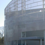 Direct Metals® supplied a custom aluminum perforated metal job for Tunica RiverPark & Museum in Tunica, Mississippi. The .125" thick aluminum perforated metal was supplied in three different perforation patterns to give depth and artistic flair to the front façade of the river park building. One-third of the job had a 3/4" diameter hole, the second-third had a 1" diameter hole and the remaining perforated metal was supplied with a 1-1/4" diameter hole. The aluminum perforated metal was fastened to a curved galvanized steel tubing frame to create this custom masterpiece!
