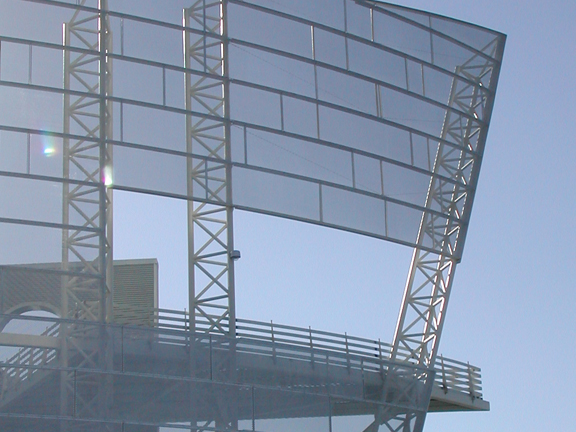 Direct Metals® supplied a custom aluminum perforated metal job for Tunica RiverPark & Museum in Tunica, Mississippi. The .125" thick aluminum perforated metal was supplied in three different perforation patterns to give depth and artistic flair to the front façade of the river park building. One-third of the job had a 3/4" diameter hole, the second-third had a 1" diameter hole and the remaining perforated metal was supplied with a 1-1/4" diameter hole. The aluminum perforated metal was fastened to a curved galvanized steel tubing frame to create this custom masterpiece!