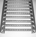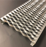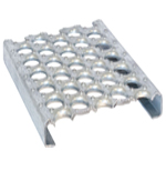 Perf-O Grip™ is a one-piece plank metal grating that is manufactured into the shape of a channel by a cold forming process. The web of the channel is the walking surface with large debossed holes that are surrounded by smaller embossed traction buttons. Common applications for metal grating include commercial and industrial walkways, metal floor grating, and metal stair treads (safety treads).