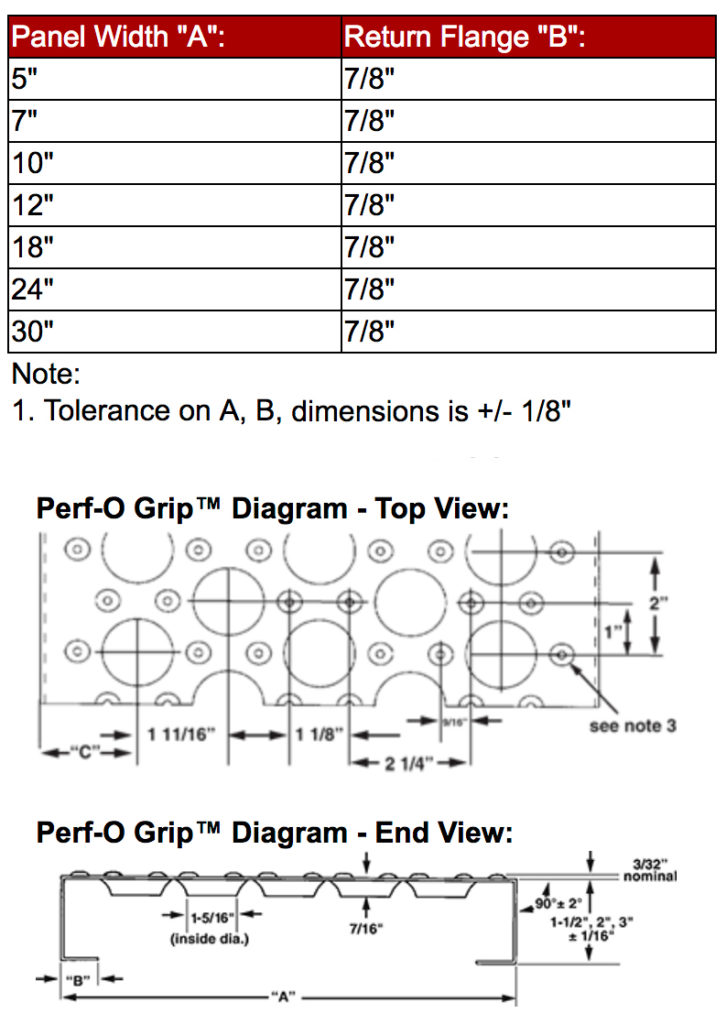Perf-O Grip™ Safety Metal Grating Sizing Options: